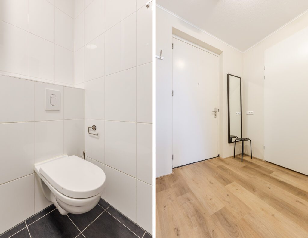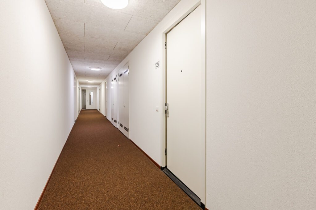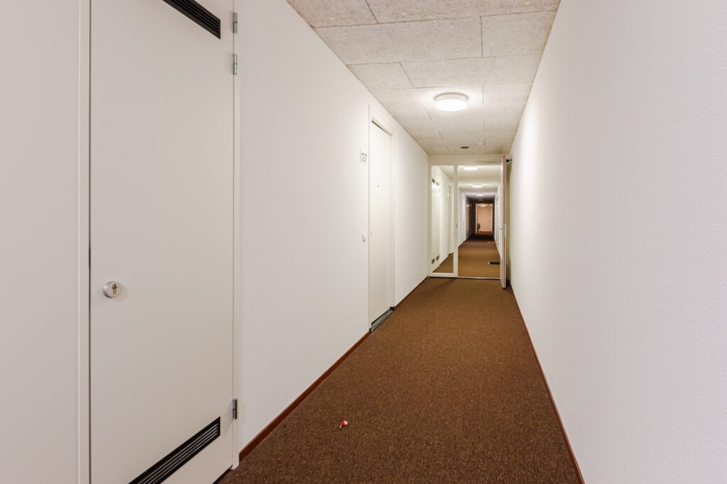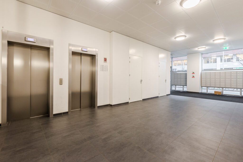 Via de beveiligde gezamenlijke entree met lift bereikt u de zesde verdieping. De hal geeft toegang tot alle vertrekken.
