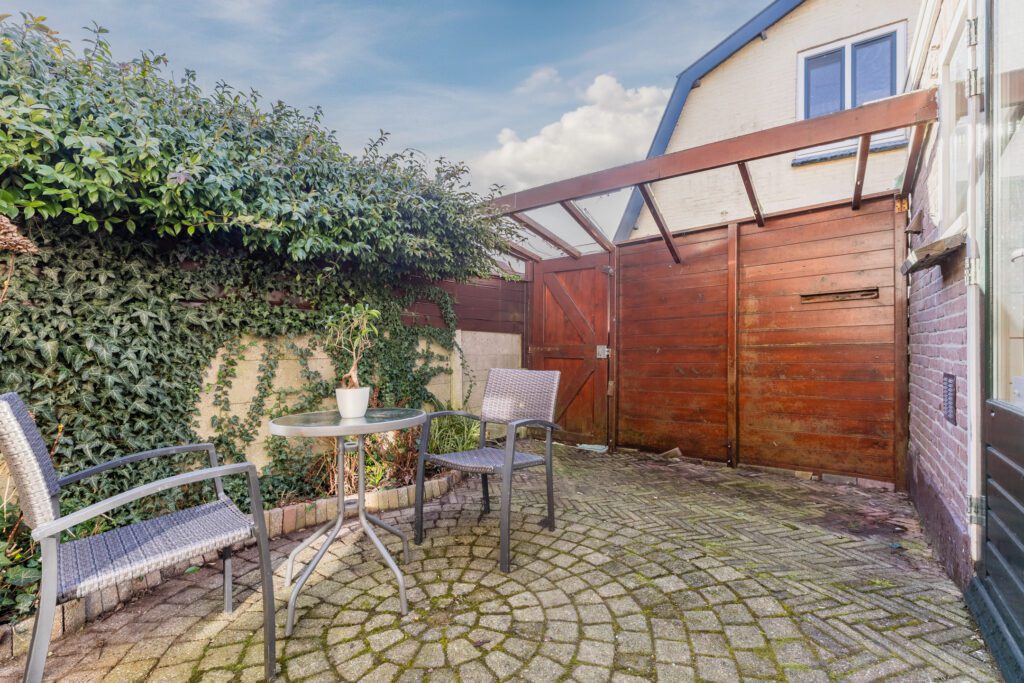Terrasdeuren openen naar de op het zuiden gelegen tuin, een fijne plek om van de zon en de rust te genieten. De tuin beschikt daarnaast over een handige achterom.